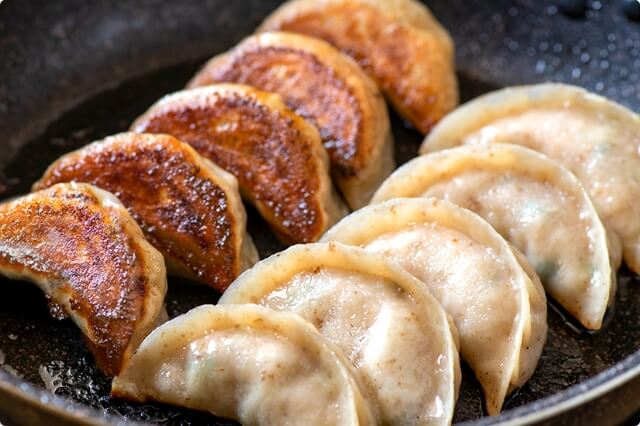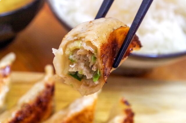 餃子の餡に使用しているのは「越後もちぶた」。限られた生産者によって、徹底された飼育環境のもとで育られたブランド豚で、きめ細かい肉質と深いコクが特徴です。そして、野菜は厳選した国産のものを使用。キャベツの甘みと肉の甘みが見事にコラボレーションしています。旨味がぎゅっと詰まった餡は、ビールがグビグビ進む美味しさ。食べたらきっと、えびす様のような笑顔になること間違いありません!